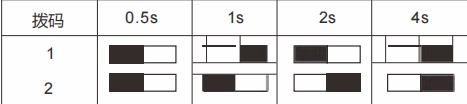 撥碼開關撥致如下狀態(tài)進行輸出響應時間設置:
